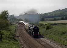 70013 Oliver Cromwell on the South Western Mainline, seen at Hurstbourne Viaduct and Buckhorn Weston (nr Gillingham).