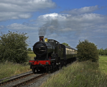 The second photo charter of the week, this time the weather was great. 9017 on the superb GWR era freight and a great passenger set. 9017 is visiting the SVR from its base at the Bluebell Railway. |