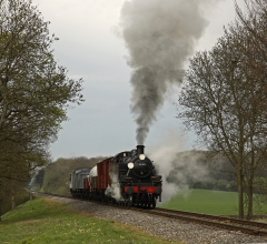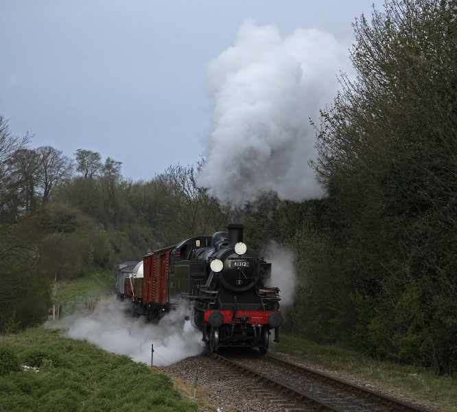 A photographic charter ran by Warwick Falconer and myself. Utilising Ivatt 41312 and matching BR era freight stock, we had a 6.30am start running from Alresford to Medstead. Despite an awful forecast we where lucky with the weather, including some very stormy shots at Soldridge Cutting.