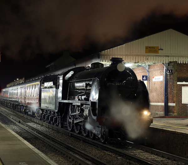 A double dose of mainline steam. 30777 is seen at Vauxhall, whilst 35028 Clan Line is seen at Clapham Junction and Chilworth on a fantastic winters day! The night shots are at Basingstoke.