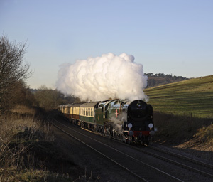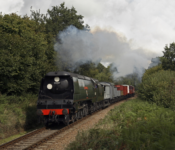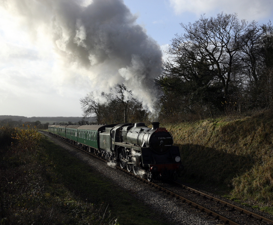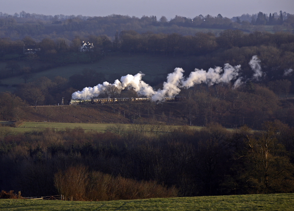 Good light this time of year is very hard to beat, 34007 and 73096 are see in action at the Mid Hants. |