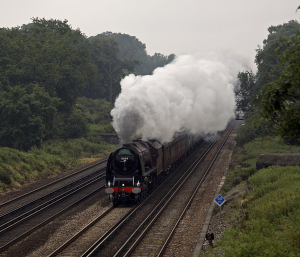 6233 caught in action on the Cathedrals Express near Purley on Thames. |