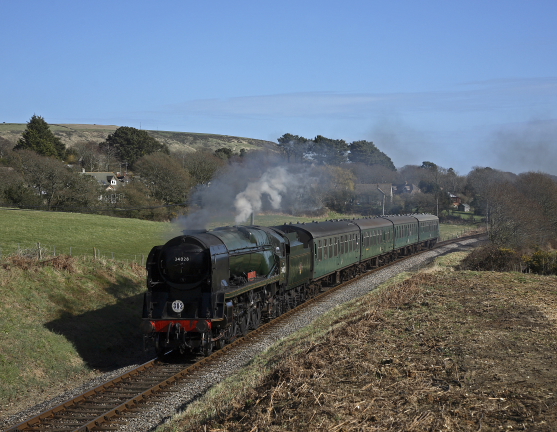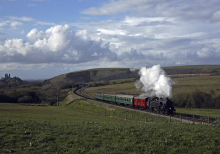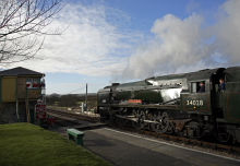 34028 "Eddystone" is now back at Swanage after visits to the North Yorks Moors and an extended stay at the Bluebell Railway. |