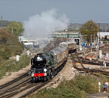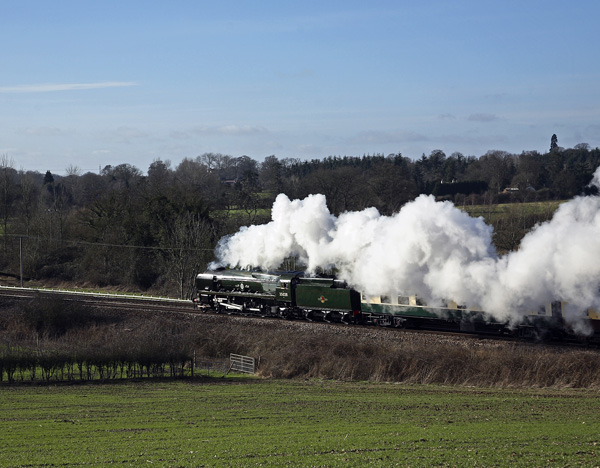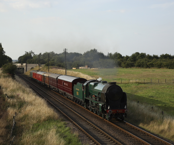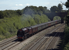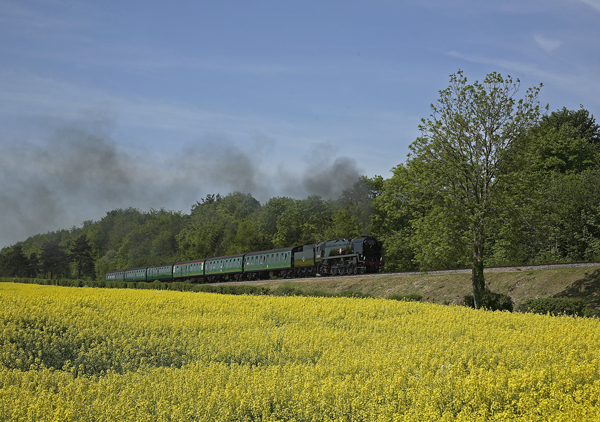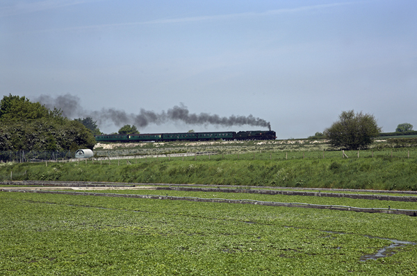 70013 Oliver Cromwell on the South Western Mainline, seen at Hurstbourne Viaduct and Buckhorn Weston (nr Gillingham).