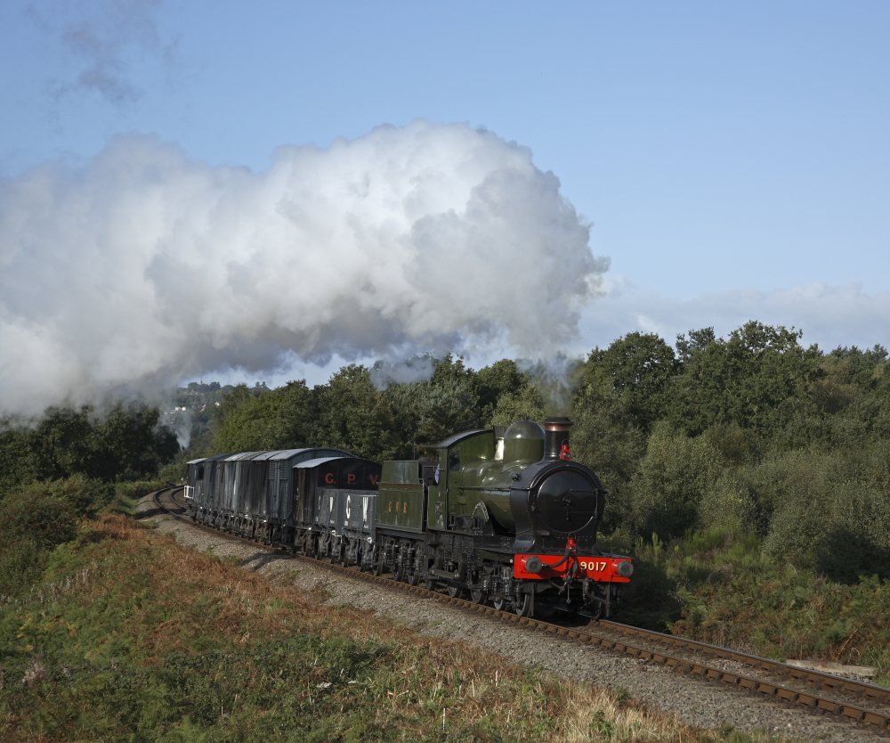 The second photo charter of the week, this time the weather was great. 9017 on the superb GWR era freight and a great passenger set. 9017 is visiting the SVR from its base at the Bluebell Railway. |