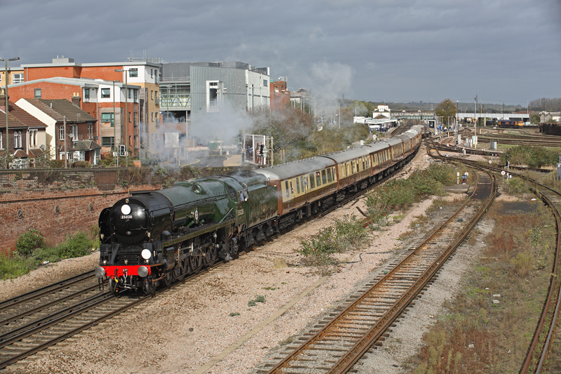 35028 "Clan Line" seen at Eastleigh with a VSOE special. |